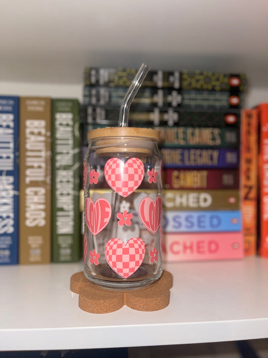 Checkered Love Glass Cup – Sweet Sips for Valentine's Day