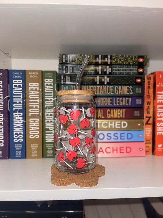 Heart Lollipop Valentine’s Day Glass Cup – 16oz Libbey Can Cup