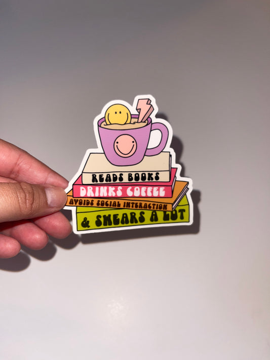 Reads Book, Drinks Coffee Sticker
