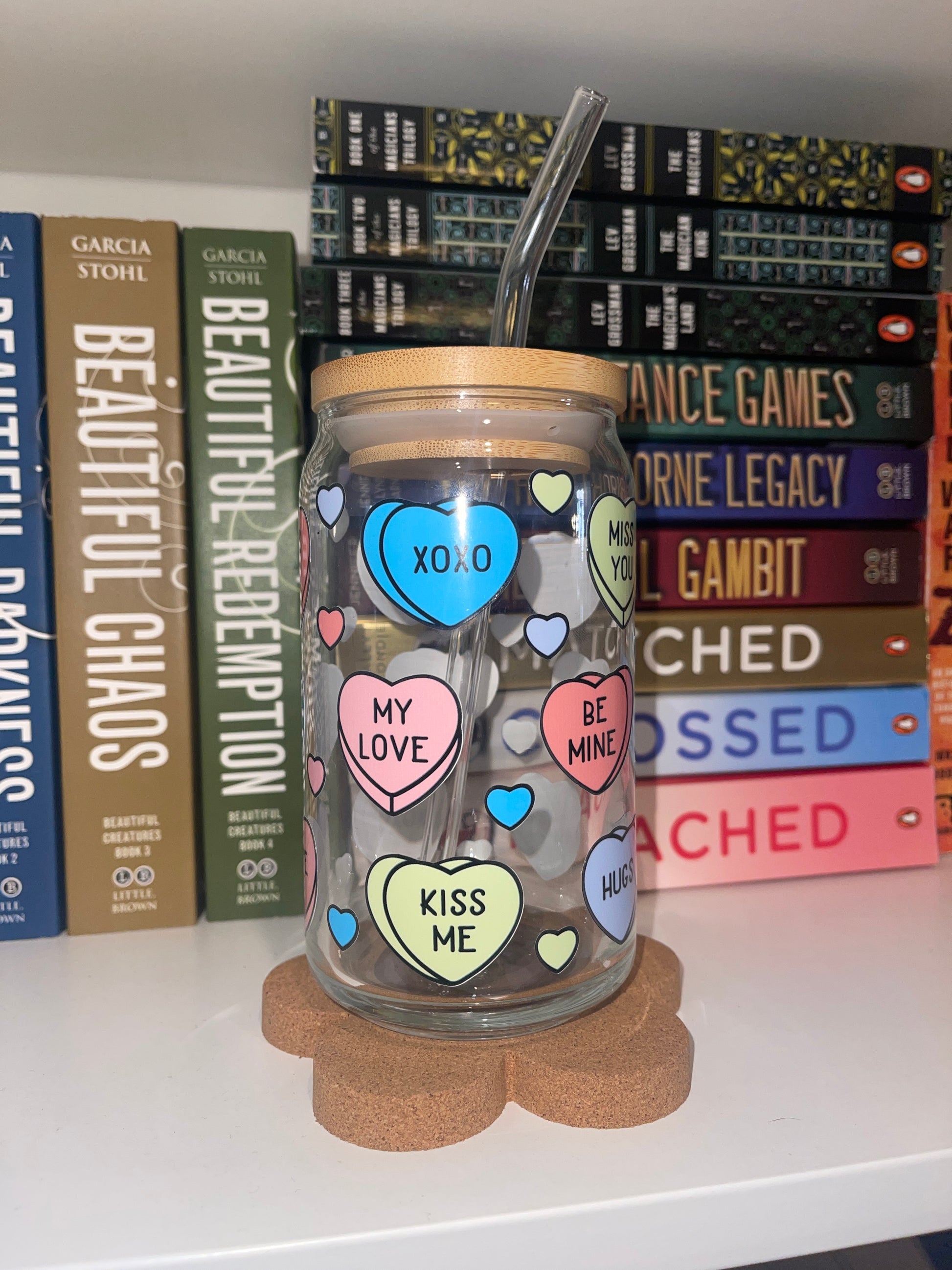Each glass is made-to-order using high-quality permanent vinyl, designed to turn your daily sips into a whole vibe. Want to take it up a notch? Add a bamboo lid, glass straw, and floral coaster for the full spooky-cute setup (peep the last two pics!).